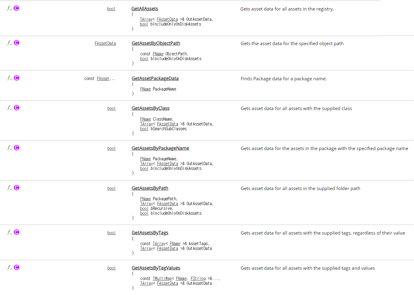 - 또한 FAssetRegistryModule(정확히는 IAssetRegistry)에서 아래 함수로 Category 별 List를 만들 수 있다.